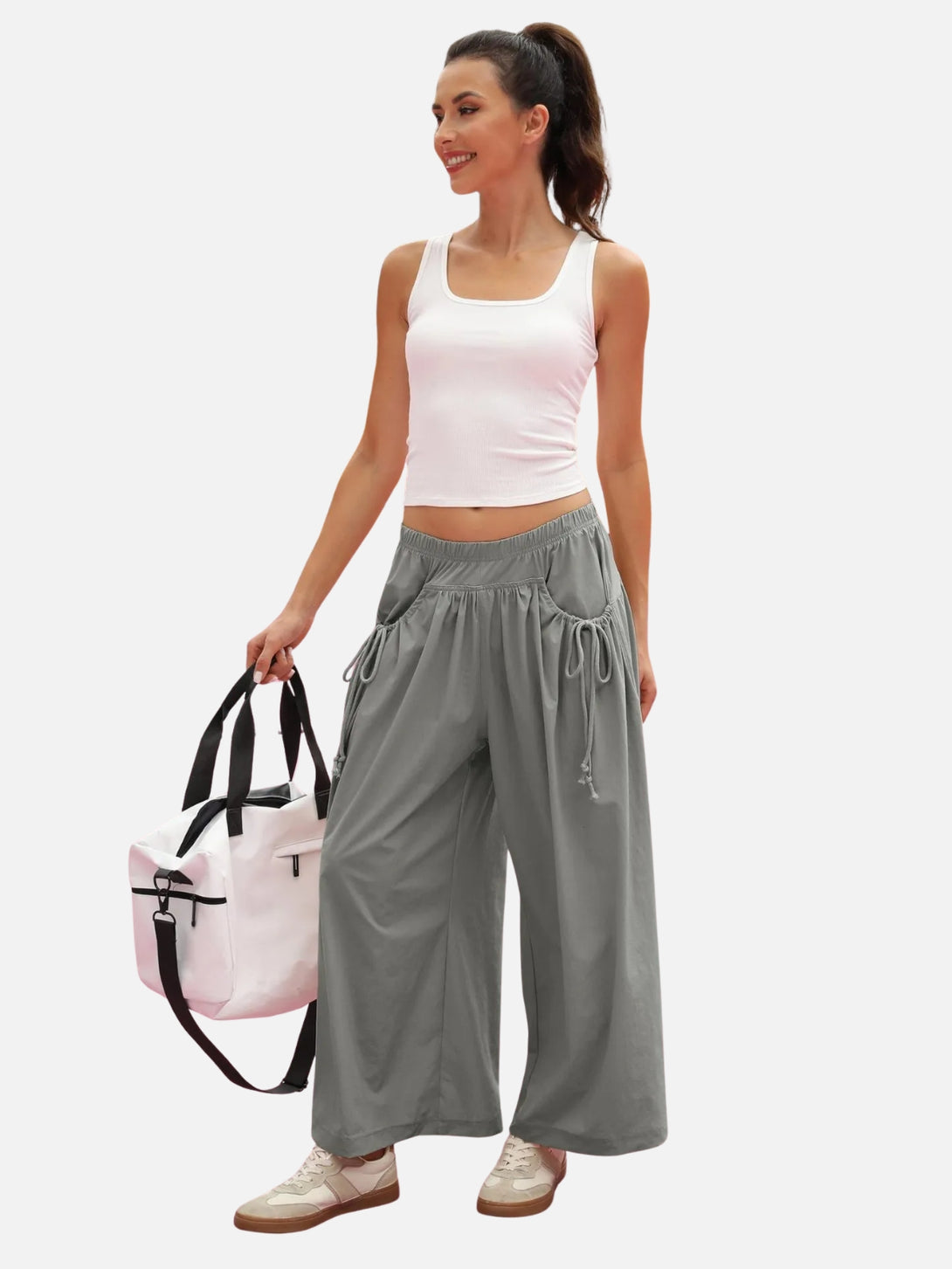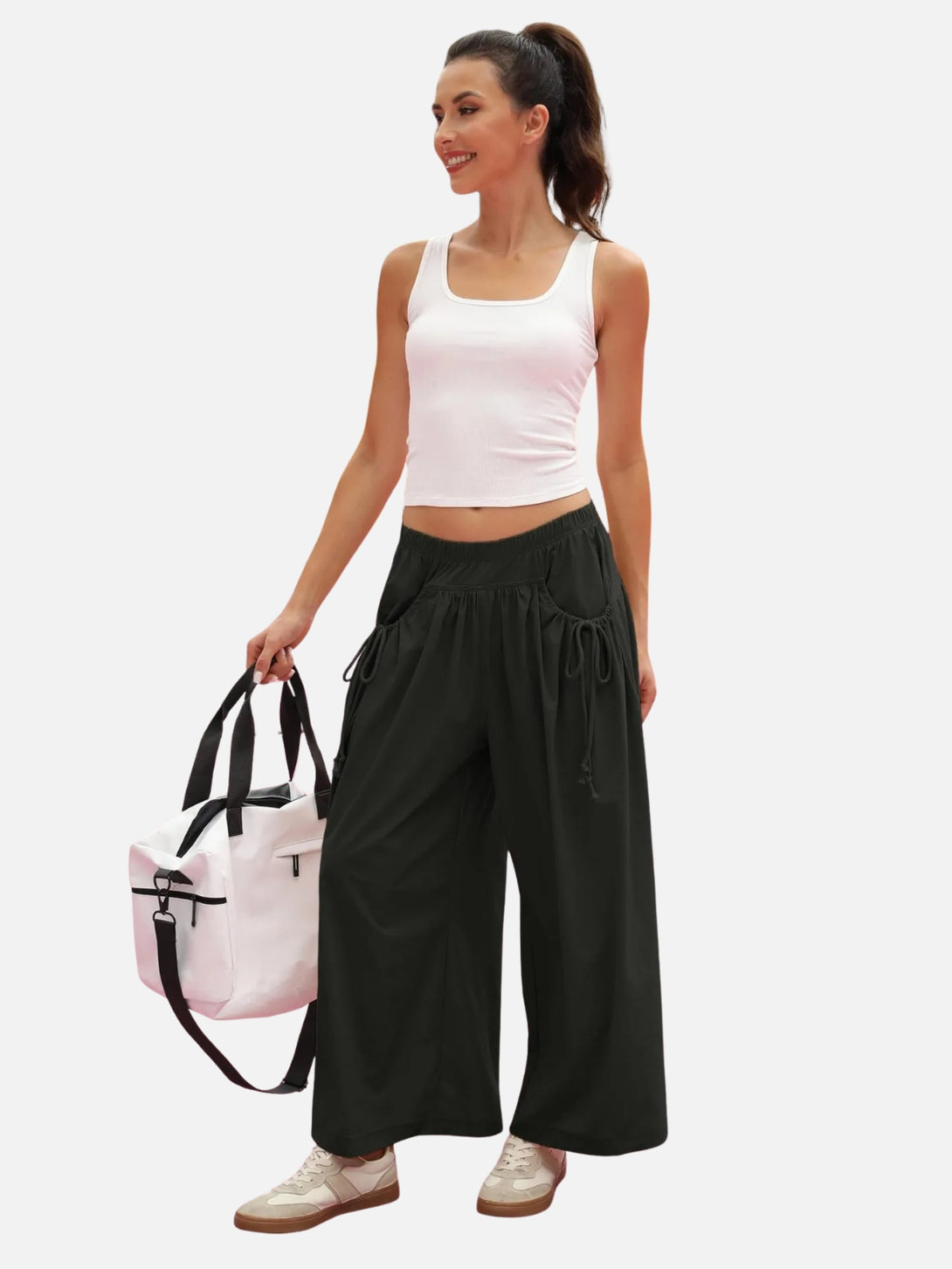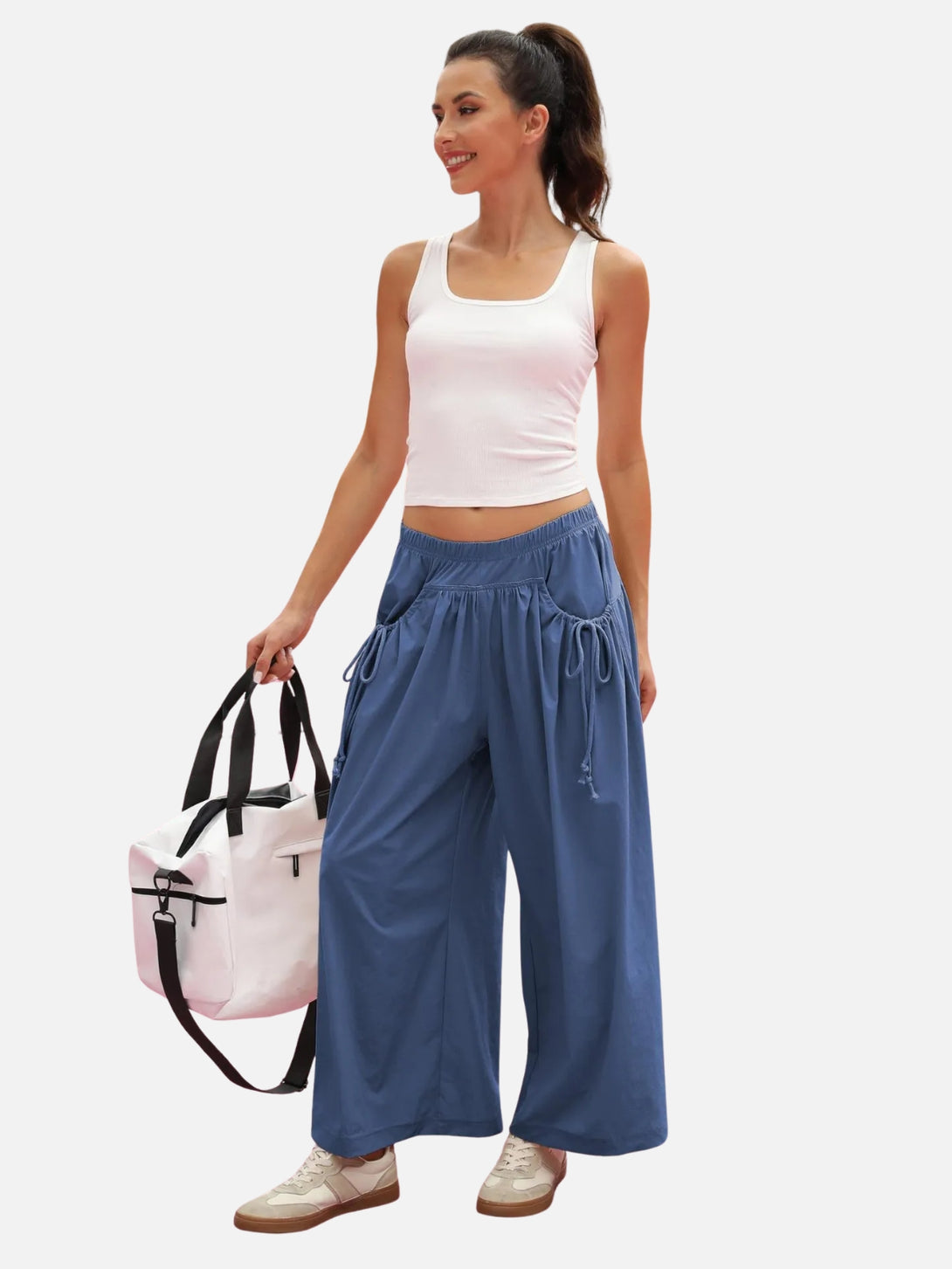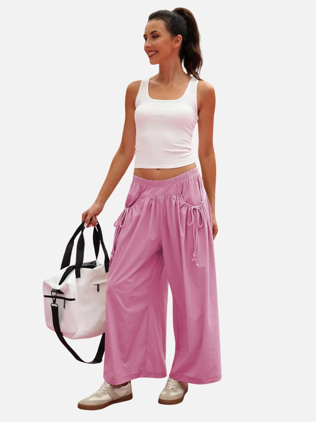 UrbanFlow Wide‑Leg Street Pants – Tie‑Pocket Harem Trousers