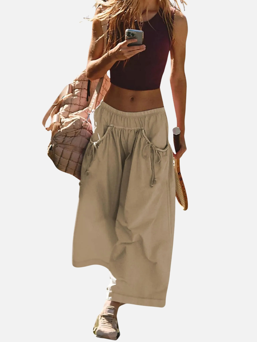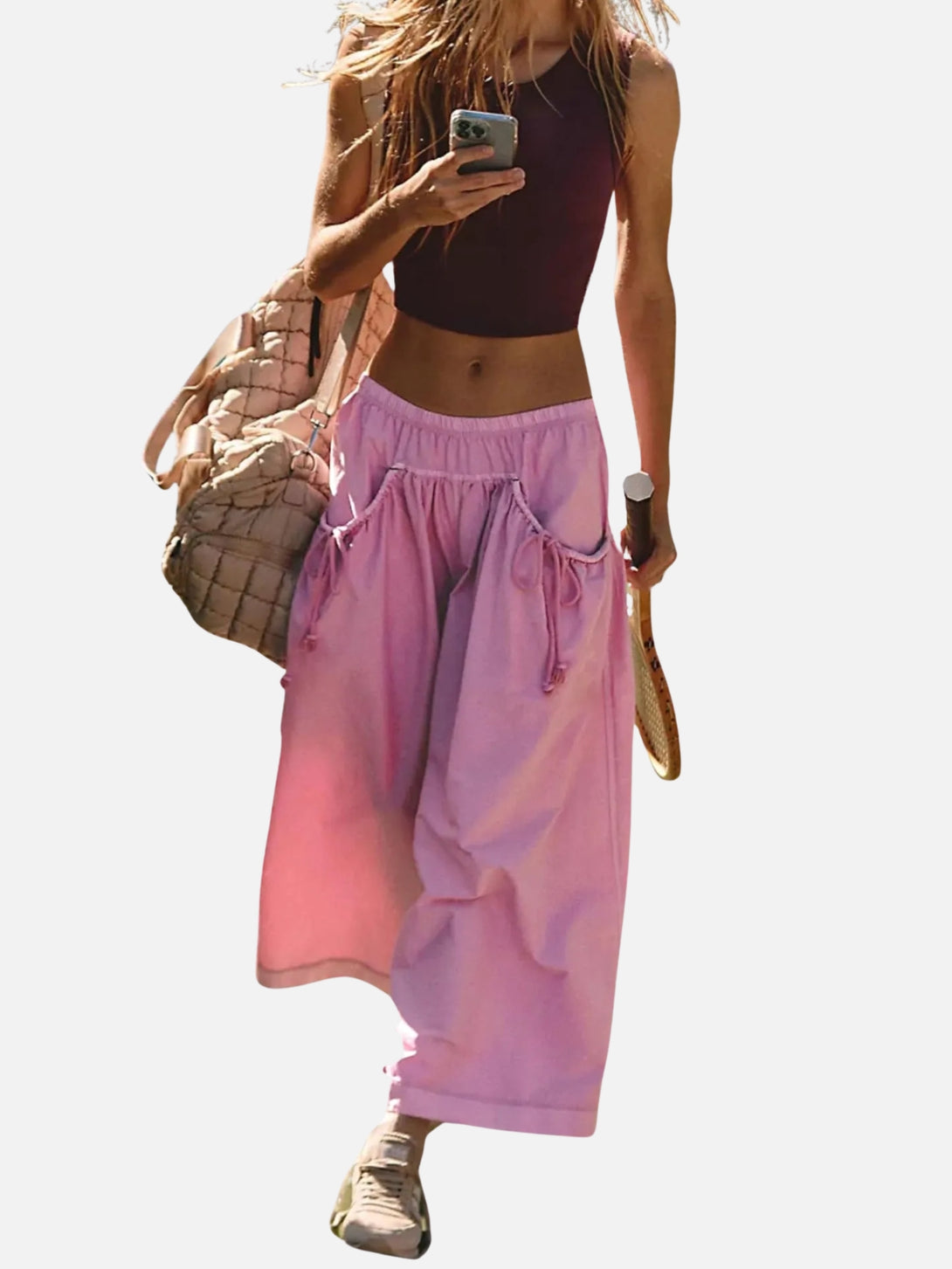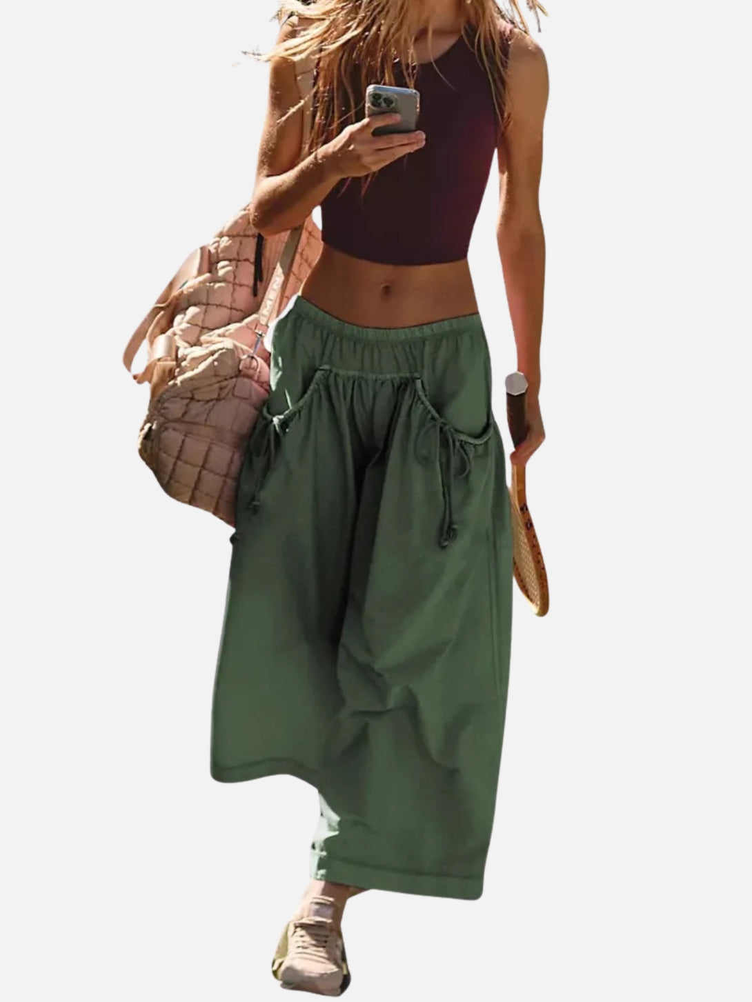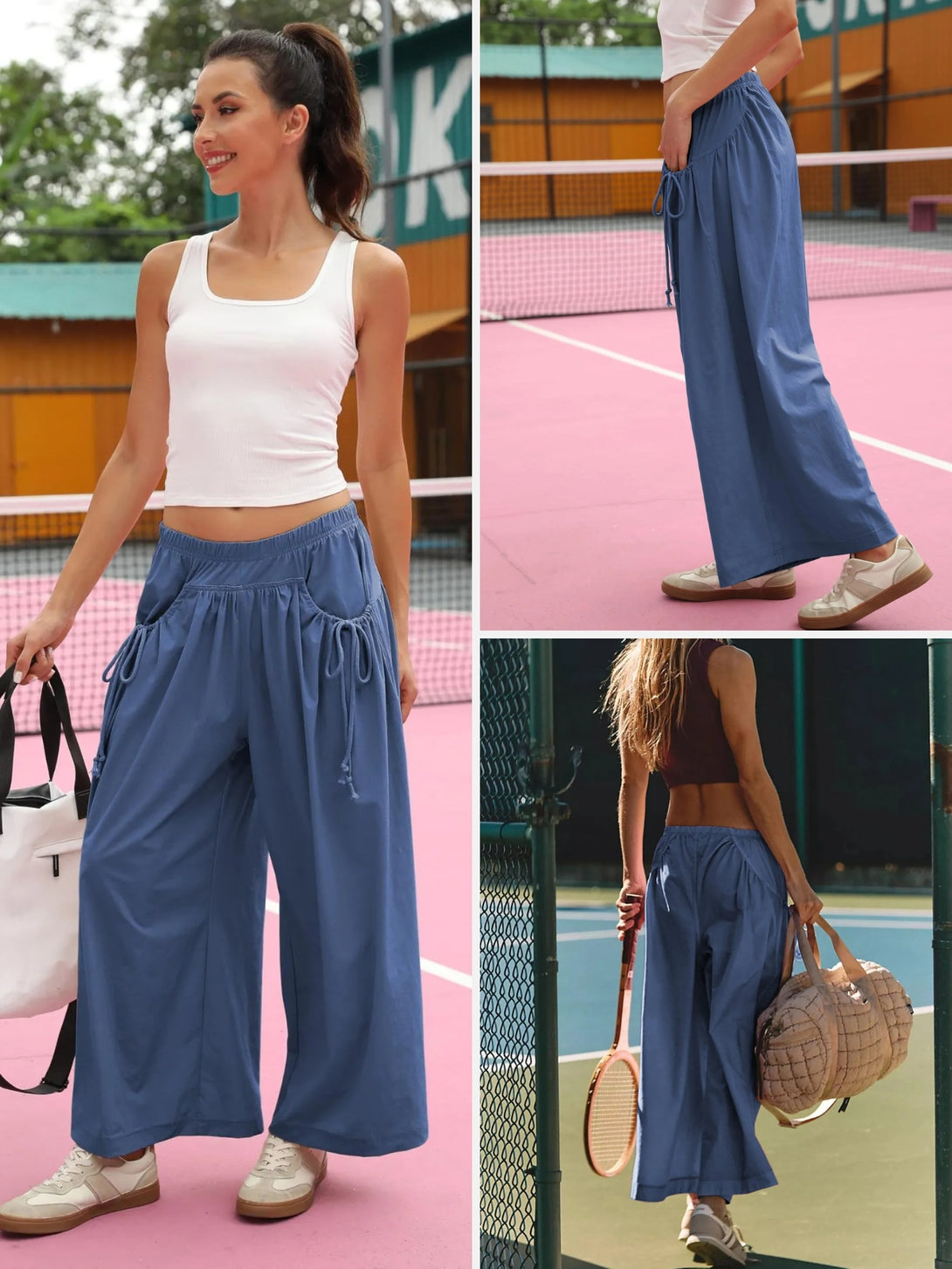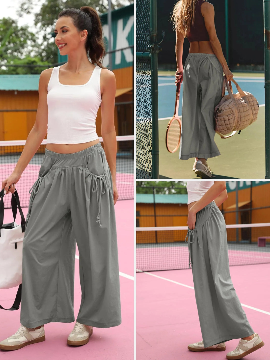 UrbanFlow Wide‑Leg Street Pants – Tie‑Pocket Harem Trousers