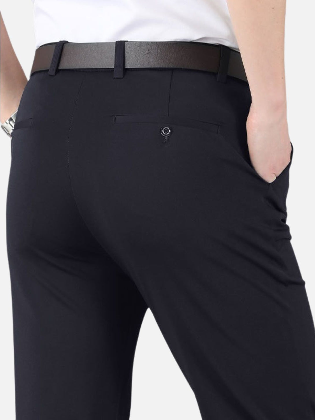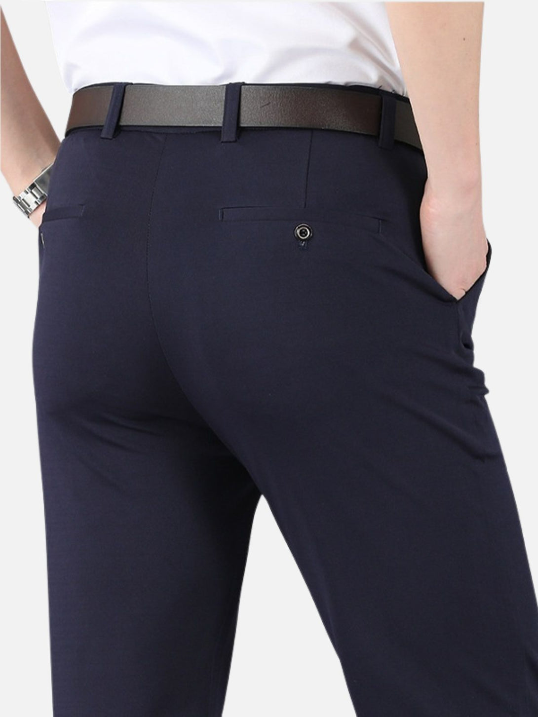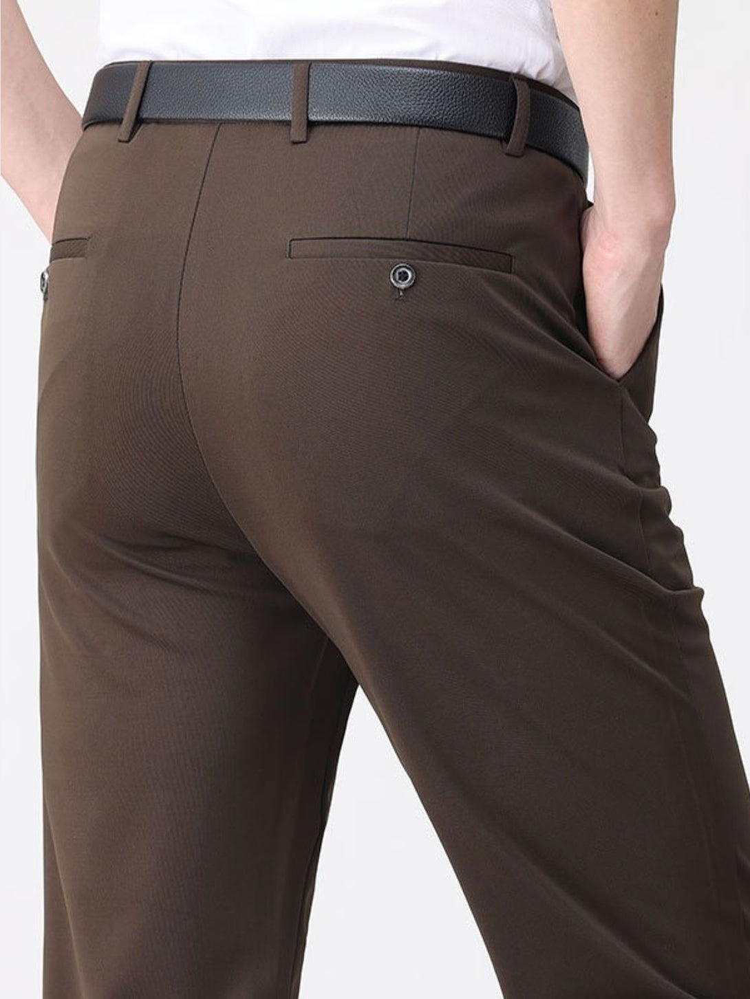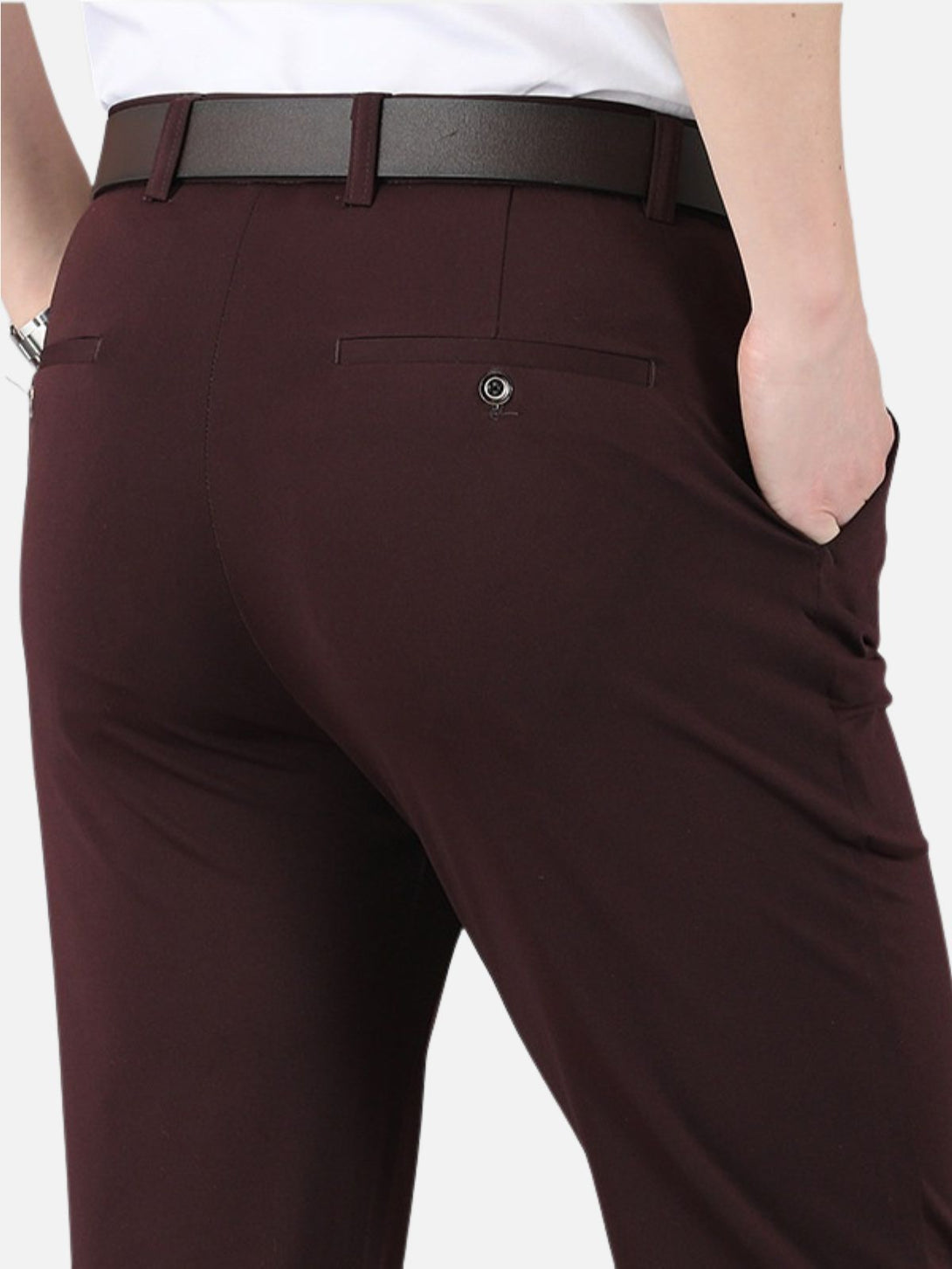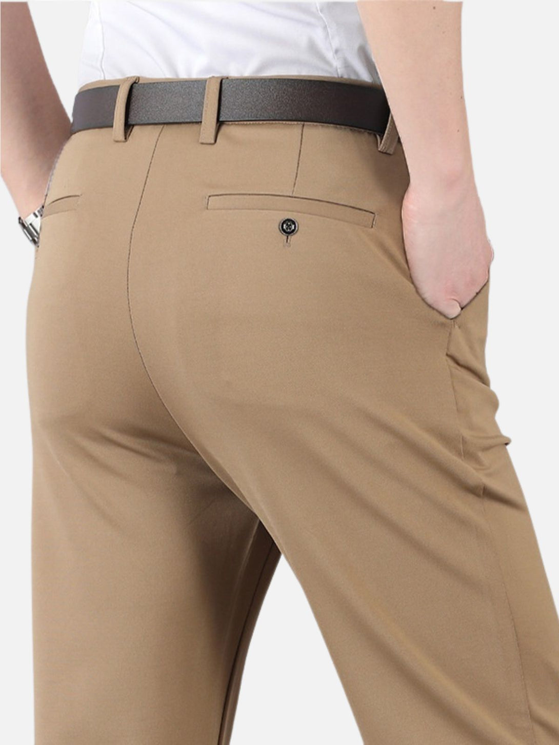 These Non-Iron Stretch Casual Trousers feature wrinkle-resistant material and stretch fabric, ensuring both durability and comfort throughout the day. Ideal for everyday use, they provide unrestricted movement and require minimal upkeep while maintaining a polished look.